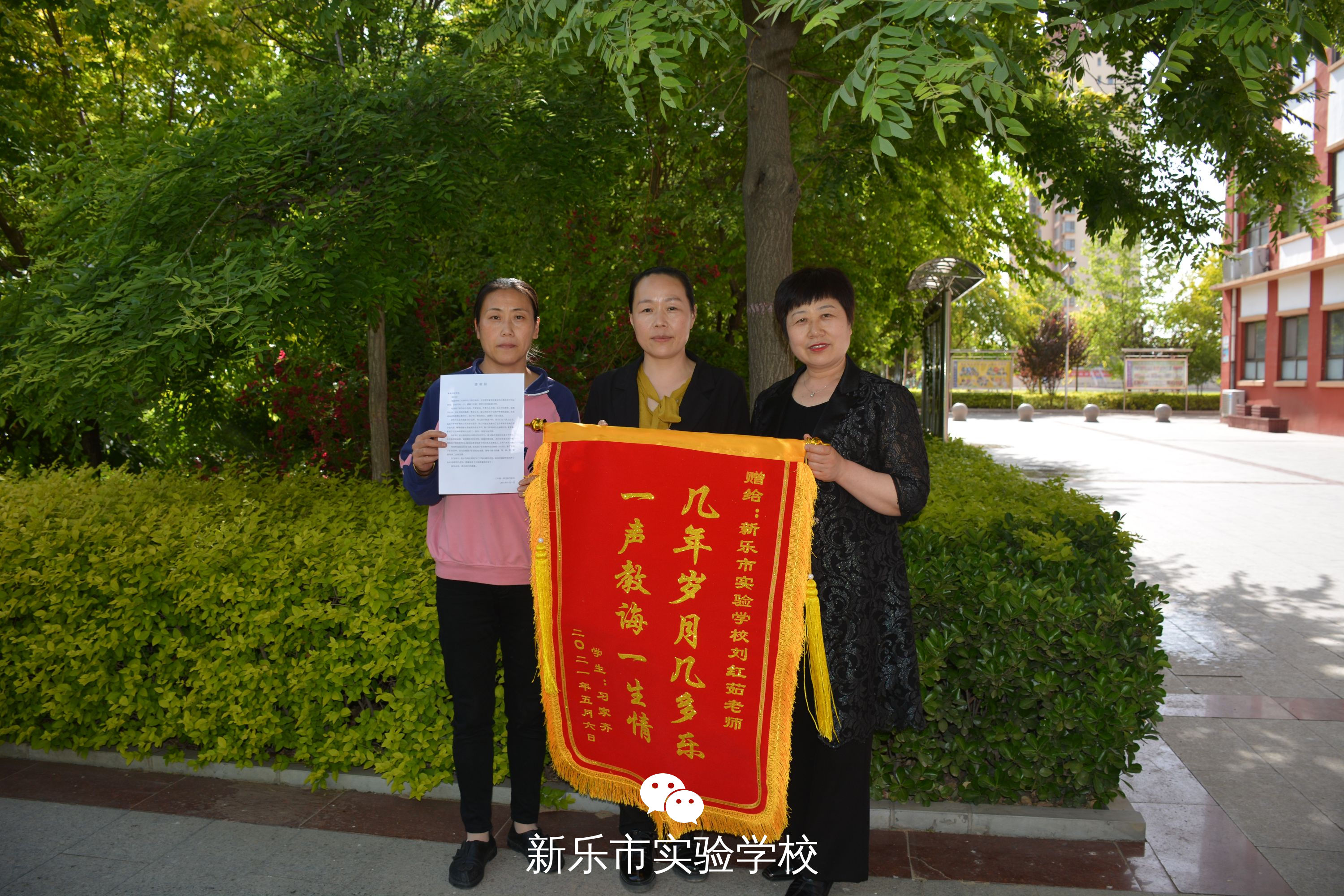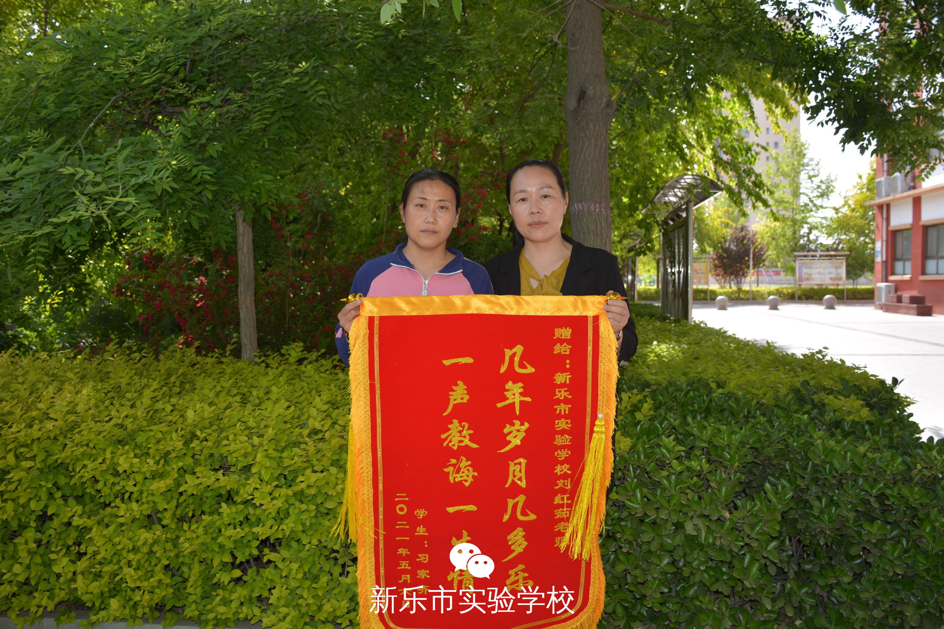 2021年5月8日下午,实验学校三年级1班学生习家齐的家长满怀感激之情将绣有“几年岁月几多乐,一声教诲一生情”字样的锦旗送到了副校长高洁和刘红茹老师的手中,以此感谢学校、老师对孩子的谆谆教导和无微不至的照顾与关怀。