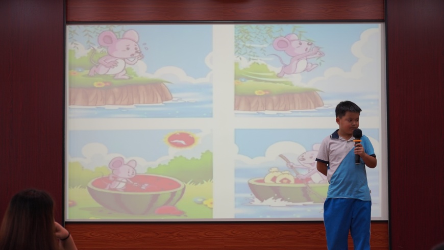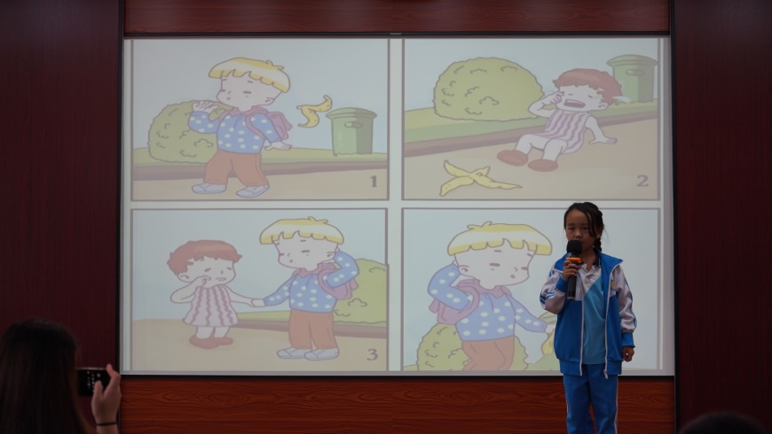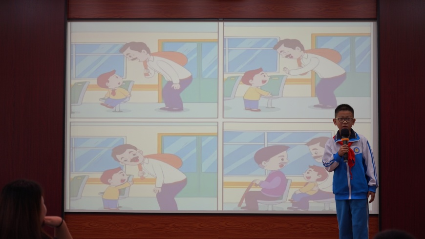 口语比赛由刘丽娜老师主持。本次活动针对不同学段学生的特点,精心设计了两种竞赛形式。一、二年级的小同学们参加了别开生面的口语交际比赛。