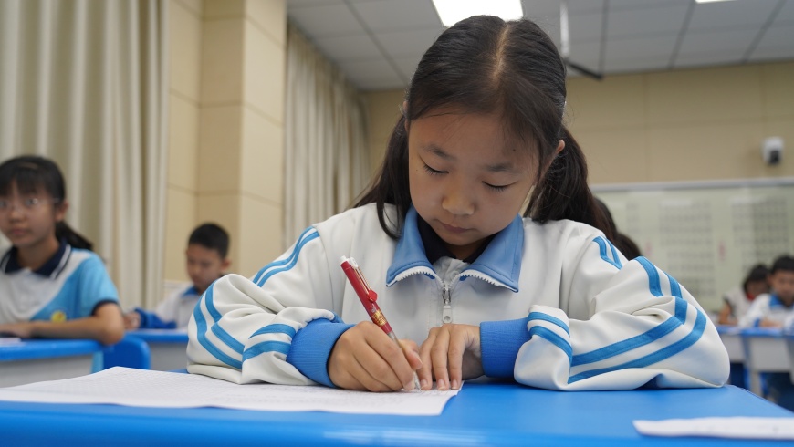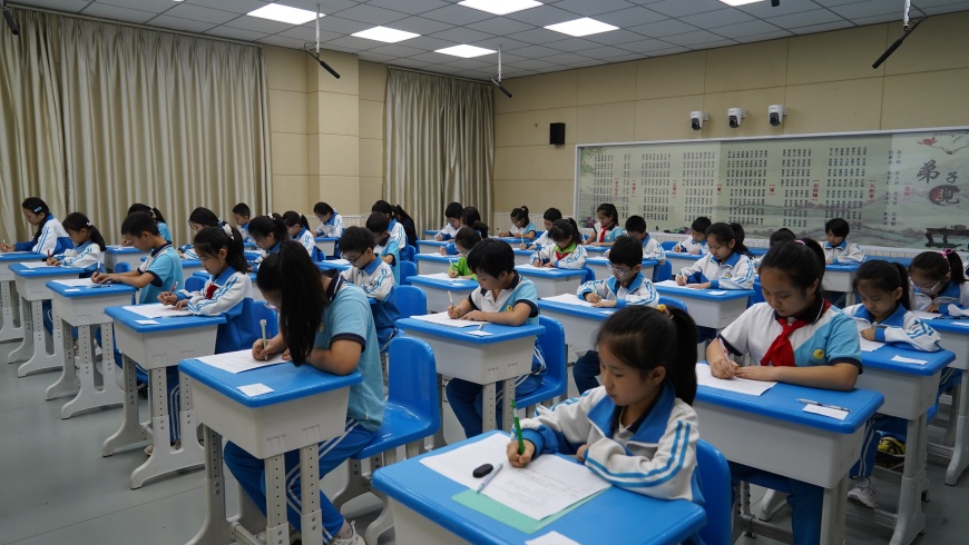 与此同时,三至六年级的同学们则投身于静谧而充满思考的作文竞赛中。同学们围绕国庆主题,潜心构思,妙笔生花。有的回顾历史,抒发对革命先辈的崇敬之情;有的描绘祖国山河的壮丽与家乡的变化,表达自豪之感;有的则畅想未来,立志为祖国的繁荣富强而努力学习。一篇篇情感真挚、文笔流畅的文章,不仅体现了中高年级学生扎实的写作功底,更凝聚了他们对祖国母亲的深厚情感和美好祝愿。
