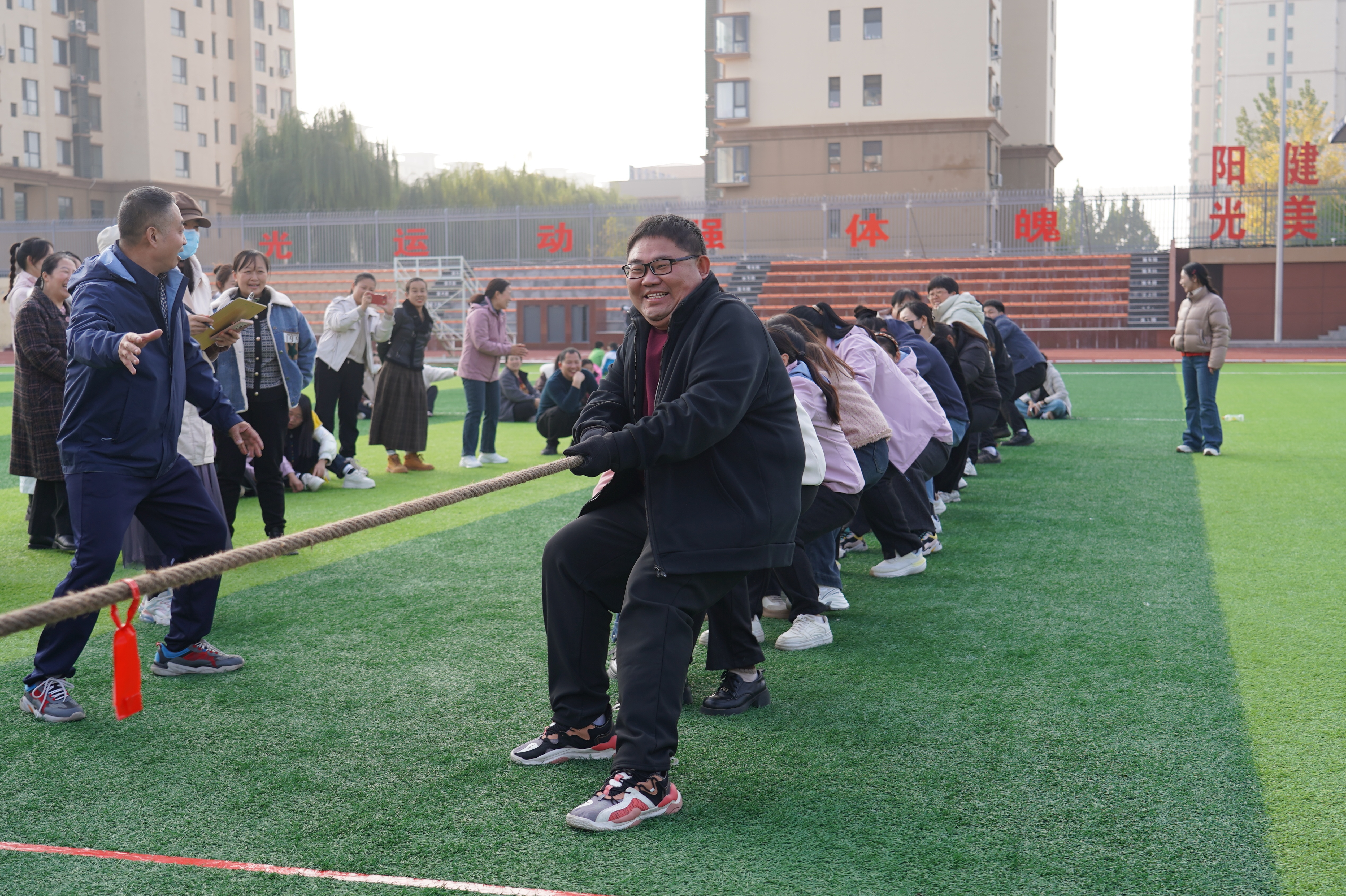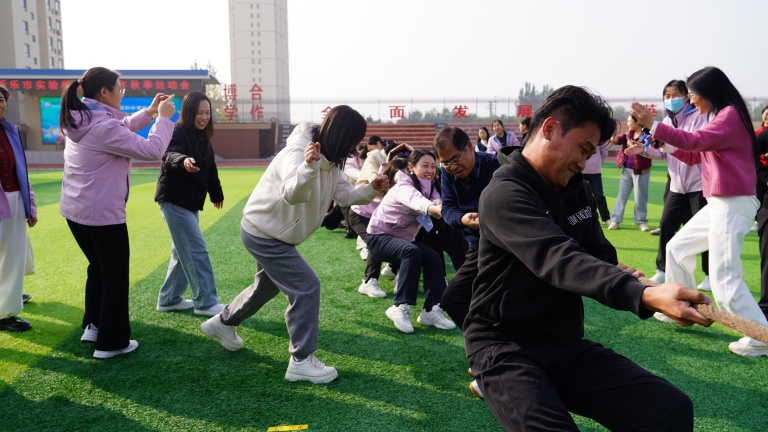 为丰富教师课余文化生活,增强教师团队凝聚力与协作意识,营造团结奋进、积极向上的校园氛围,新乐市实验学校于10月31日下午举行了一场别开生面的教师拔河比赛。